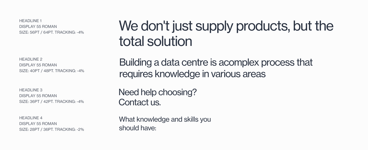 Tento řez je určen pro výrazné nadpisy, titulky a velké typografické plochy. Vyznačuje se čistotou, moderností a vysokou čitelností i při větších velikostech. Dodává značce sebevědomí a jasný vizuální charakter.